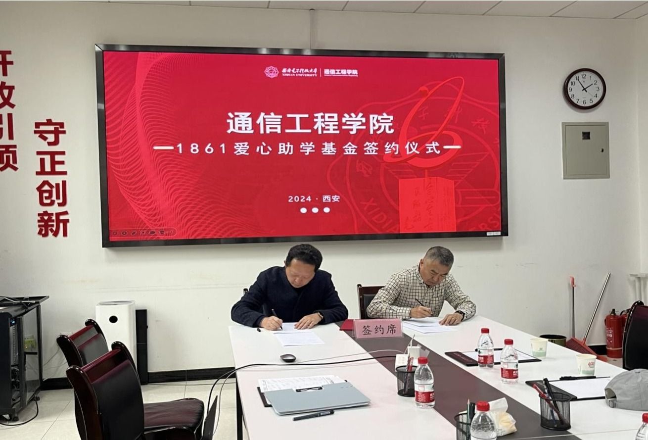 (通訊員 王同達) 11月17日下午,“西電通院1-861助學基金”簽約儀式于北校區(qū)主樓207會議室順利舉行。通信工程學院執(zhí)行院長李云松,通院1-861班校友代表吳永清、陳勁、程立新、鄭為民出席本次活動,儀式由院黨委副書記主持。