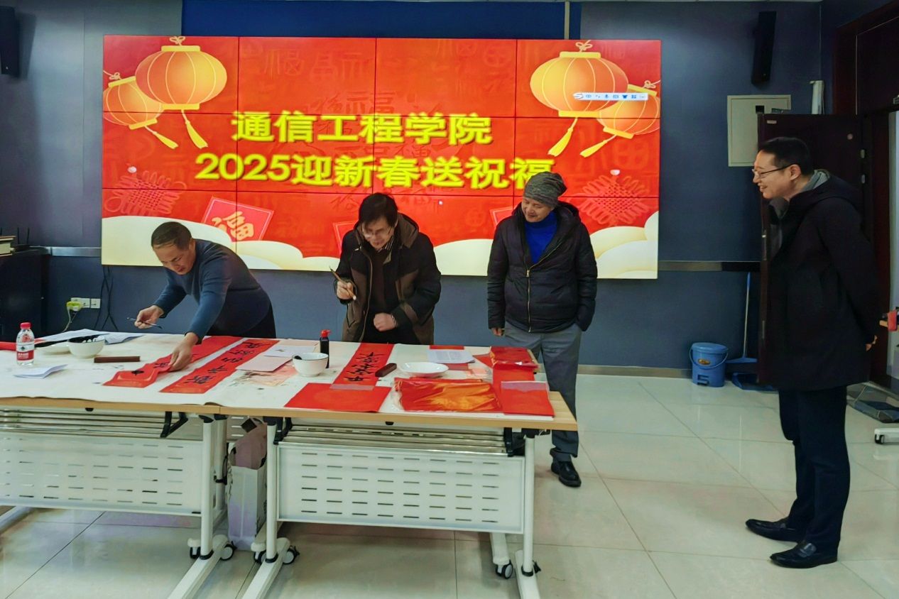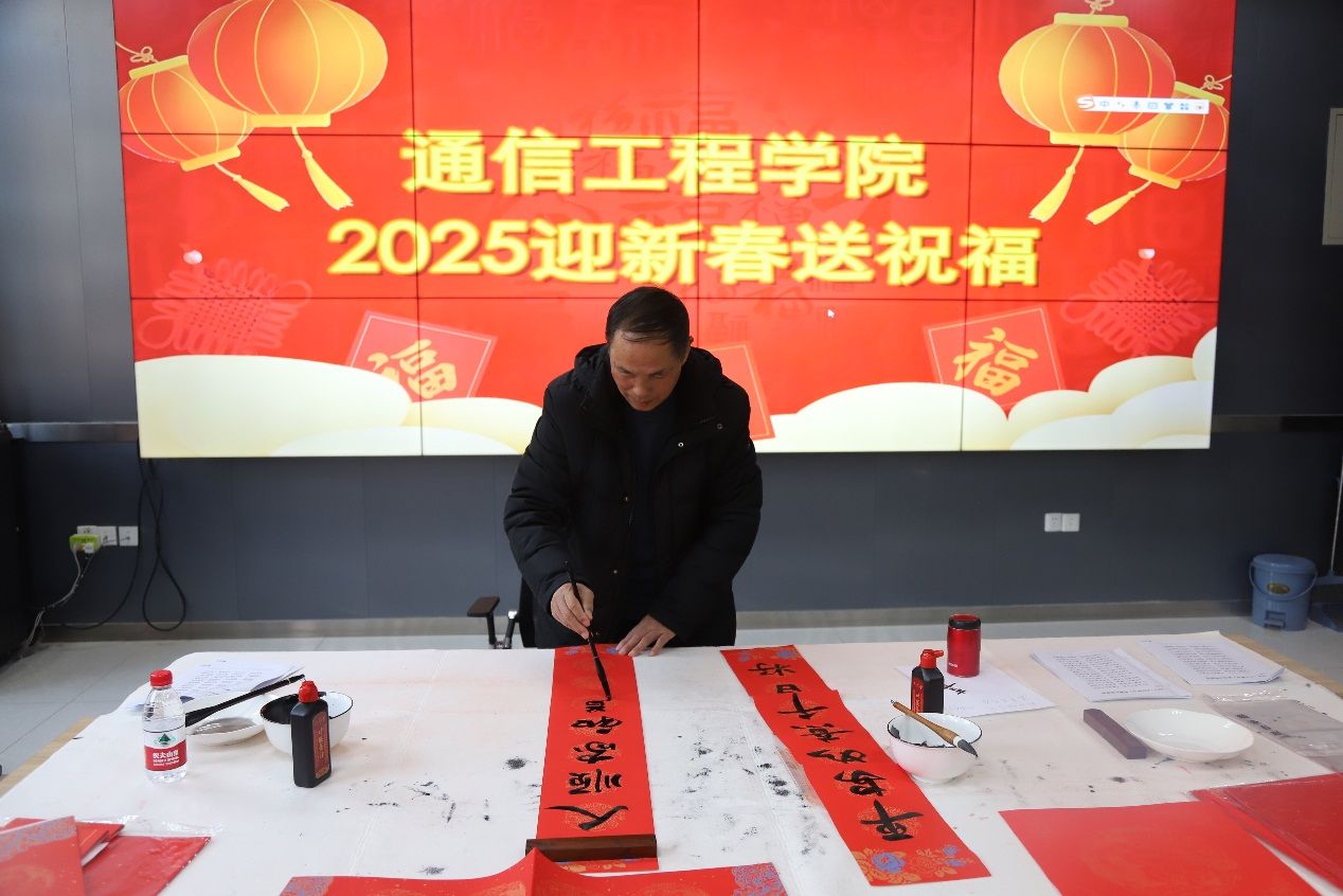 (通訊員 陳麗娟)2025年1月7日,正值寒冬臘月,通信工程學院工會為全體教職工帶來了一場別開生面的“迎新春送祝福”寫春聯(lián)活動。此次活動不僅旨在傳承和弘揚中華優(yōu)秀傳統(tǒng)文化,更希望通過書寫春聯(lián)這一形式,為即將到來的新春佳節(jié)增添濃厚的節(jié)日氛圍,同時也讓教職工在忙碌的工作之余,體驗到書法藝術的獨特魅力。