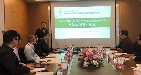 隨后,西安電子科技大學電子信息與通信工程學科專業(yè)國家級實驗教學示范中心主任陳彥輝教授詳細介紹了廣和通與西電的產(chǎn)學協(xié)同育人項目,建議在教育部提出的新工科思想體制下,以工程實踐作為起點,將學校教育貫穿其中,培養(yǎng)出能夠為國家、行業(yè)做貢獻、能夠領(lǐng)導行業(yè)的實干家。西電與廣和通強強聯(lián)合,將產(chǎn)業(yè)與教學有機結(jié)合起來,產(chǎn)學協(xié)同育人。這次的校企協(xié)作是將學校和企業(yè)聯(lián)合起來的良好開端,希望雙方能建立長期地、互惠互利的廣泛合作。以企業(yè)的實際需求支撐本科教學,達成實踐與教學雙通道連接,提升企業(yè)和高校的國際競爭力,塑造具備項目管理、工程管理能力的復合型創(chuàng)新人才,為學生未來就業(yè)打下扎實的基礎(chǔ)。校企合作是引領(lǐng)未來高校和產(chǎn)業(yè)的重要發(fā)展方向。