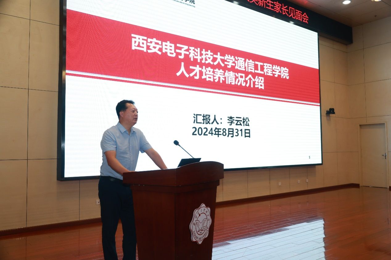(通訊員 王星雨)為歡迎2024級(jí)通信大類本科生入學(xué)西安電子科技大學(xué)通信工程學(xué)院,幫助學(xué)生及家長(zhǎng)了解學(xué)院情況,加強(qiáng)家校溝通,形成育人合力,助力學(xué)生成長(zhǎng)成才。按照學(xué)校部署,學(xué)院積極響應(yīng),精心籌備,8月31日下午,學(xué)院2024級(jí)通信大類新生家長(zhǎng)見(jiàn)面會(huì)在南校區(qū)行政樓210報(bào)告廳舉行,學(xué)院黨委書記魏峻、執(zhí)行院長(zhǎng)李云松,教學(xué)相關(guān)老師及2024級(jí)輔導(dǎo)員參與本次見(jiàn)面會(huì),見(jiàn)面會(huì)由學(xué)院黨委副書記沈強(qiáng)主持。