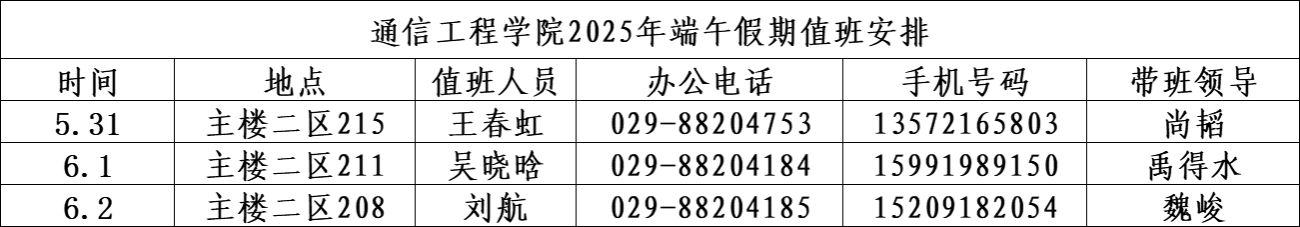 通信工程學院2025年端午假期值班安排