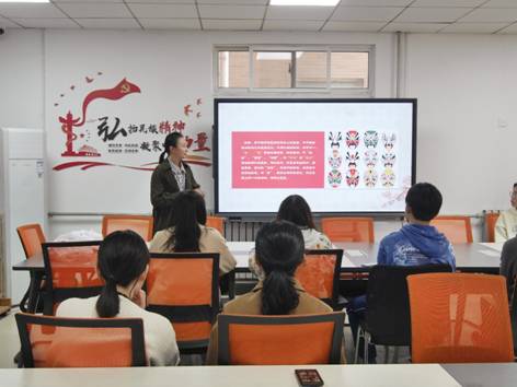 首期活動以“戲曲”為主題,選取戲曲舞臺上特征鮮明的臉譜為切入點。從臉譜是什么、臉譜的起源開始,以講授加討論的形式激發(fā)學(xué)生興趣點,同學(xué)們選取自己感興趣的人物,了解其生平事跡與大家分享,從中體會不同顏色臉譜的象征意義及其代表人物。隨后老師帶領(lǐng)大家進(jìn)行臉譜賞析,通過經(jīng)典影視作品、大量臉譜成品圖像、戲曲舞臺劇照等內(nèi)容,讓同學(xué)們通過“觀感”對臉譜的結(jié)構(gòu)、元素、顏色有了更深刻的認(rèn)知,為后期著手繪制奠定基礎(chǔ)。
