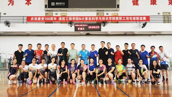 火熱七月——為黨獻禮100周年。7月17日早,通信工程學院聯(lián)合計算機科學與技術學院在北校區(qū)體育館舉辦羽毛球聯(lián)誼賽。通信工程學院副院長尚韜、計算機科學與技術學院副院長宋勝利帶隊參加了比賽。2個單位40余位教師參加了本次活動。本次活動促進通信與計算機學院教職工文化體育交流,加強培養(yǎng)團隊合作,豐富了教職工的業(yè)余生活。